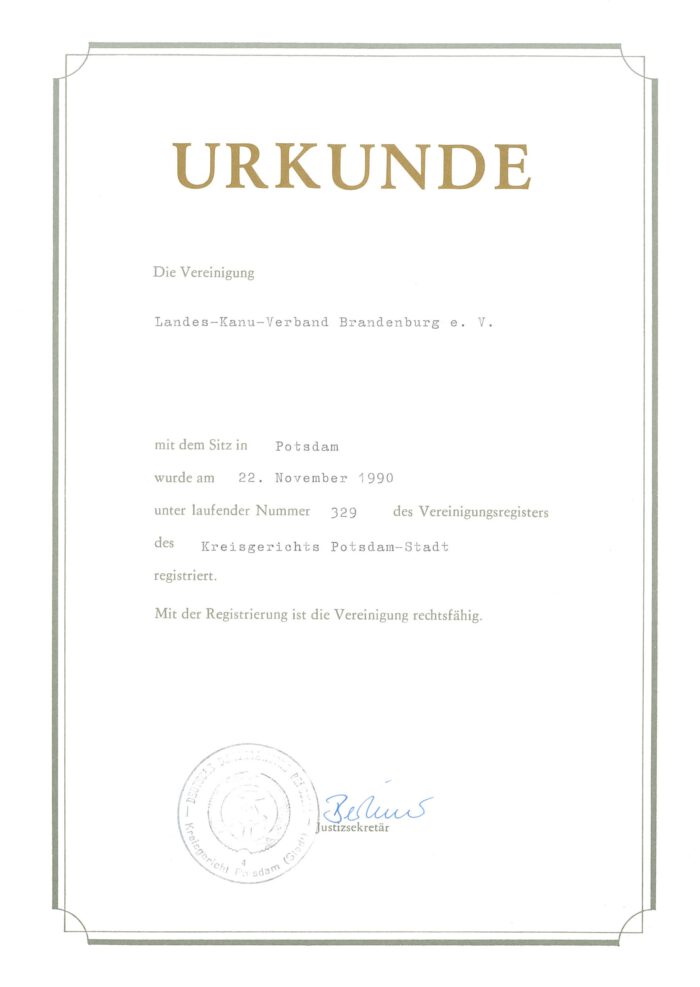 © LKV Brandenburg I Im Gründungsjahr erfolgte am 22.11.1990 dann die Registrierung des LKV beim Kreisgericht Potsdam-Stadt, dem heutigen Amtsgericht Potsdam.