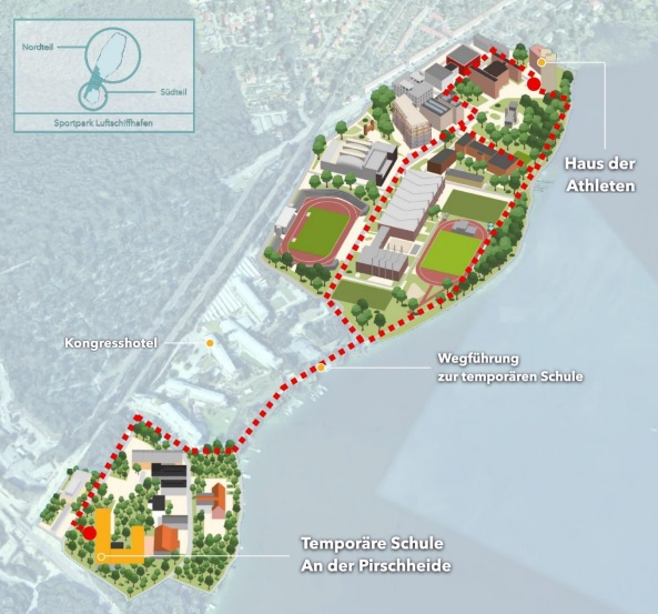Auf Grund von umfangreichen Baumaßnahmen gelangen Sie  folgendermaßen zum  temporären Schulgebäude in der Pirschheide: