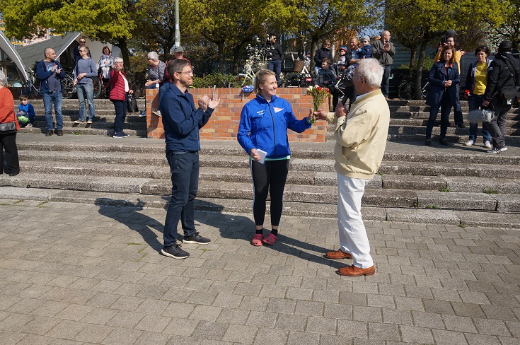 Beide noch nicht allzu lange in Ihrem Amt befindlichen Persönlichkeiten, die im Zuge des gemeinsamen Anpaddelns aller Potsdamer Kanuvereine/-abteilungen am 07. April erstmals in ihrer Funktion die Kanusaison eröffneten, fanden mit ihren kurzen Begrüßungsworten und der Würdigung der Leistungen der Wassersportler nicht nur Anklang bei den Aktiven auf dem Wasser, sondern auch bei den zahlreichen Zuschauern, die sich am Sonntagvormittag in der Neustädter Havelbucht der Landeshauptstadt versammelt hatten. Das betrifft sowohl die seit zwei Wochen als Präsidentin des Landes-Kanu-Verbandes (LKV) fungierende Dajana Pefestorff als auch den vor einem halben Jahr neu zum Potsdamer Oberbürgermeister gewählten Mike Schubert.