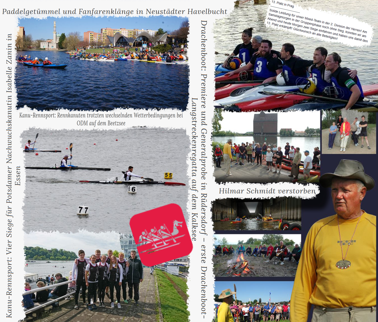 Zur Generalprobe für die 2019 stattfindende Deutsche Langstreckenmeisterschaft im Drachenboot, kam es im April auf dem Kalksee im brandenburgischen Rüdersdorf. Im selben Monat fanden sich rund 250 Kanubegeisterte zum alljährlichen Paddelgetümmel in der Potsdamer Havelbucht und damit zur offiziellen Eröffnung der Kanusaison 2018 ein. Im Mai verstarb mit Hilmar Schmidt ein langjähriger engagierter Wegbegleiter des LKV. Ebenfalls im Mai diesen Jahres nahm das Team des USV Potsdam zum ersten Mal an einem internationalen Kanu-Polo-Turnier in Prag teil. Beim Nationalmannschaftscup in Essen gewann die Potsdamer Canadierfahrerin Isabelle Zanin nicht nur die beiden Rennen über 200 m und 500 m, sondern siegte auch bei den offenen Landesmeisterschaften von Nordrhein-Westfalen im C1 über 2000 m. Erfolgreich ging das II. Quartal schließlich bei den Ostdeutschen Meisterschaften auf dem Beetzsee in Brandenburg mit 30 Medailliengewinnen für den Kanurennsport zu Ende.