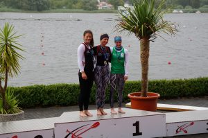 © Günter Welke | Klasse Juniorin: Marie Florian im C1 über 200 m | Marie Florian (mitte) mit Charlotte Pietzsch (links) bei der Siegerehrung im C1 über 200 m