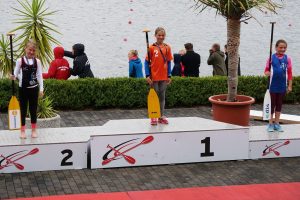 © Günter Welke | Klasse Schüler B: Carlotta Loske im C1 über 500 m | Carlotta Loske (mitte) bei der Siegerehrung im C1 über 500 m