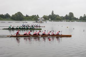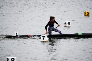 Kanu-Rennsportler jeglichen Alters sind wahrlich nicht auf schönes Wetter angewiesen. Das stellten sie während der Ostdeutschen Meisterschaften vom 22. – 24.Juni in Brandenburg an der Havel ausdrücklich unter Beweis. Trotz des kärglichen Sonnenscheins, böigem Wind und teilweise heftigem Regen lieferten sie sich auf dem Beetzsee, angefeuert von den begeisterten Zuschauern, mitreißende Duelle – egal, ob im Einer oder im Mannschaftsboot. Dabei ging es zuweilen beim Zieleinlauf recht eng zu. So sicherte sich der Mix-Achter-Canadier des KV Brandenburger Adler mit einem enormen Schlusssprint den Sieg über 500 m mit 0,2 Sekunden Vorsprung.