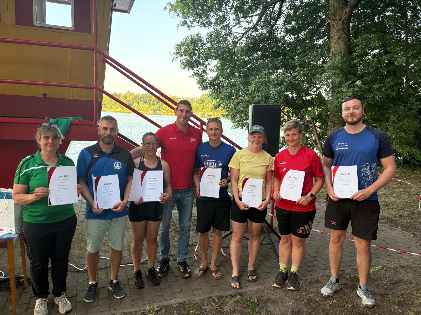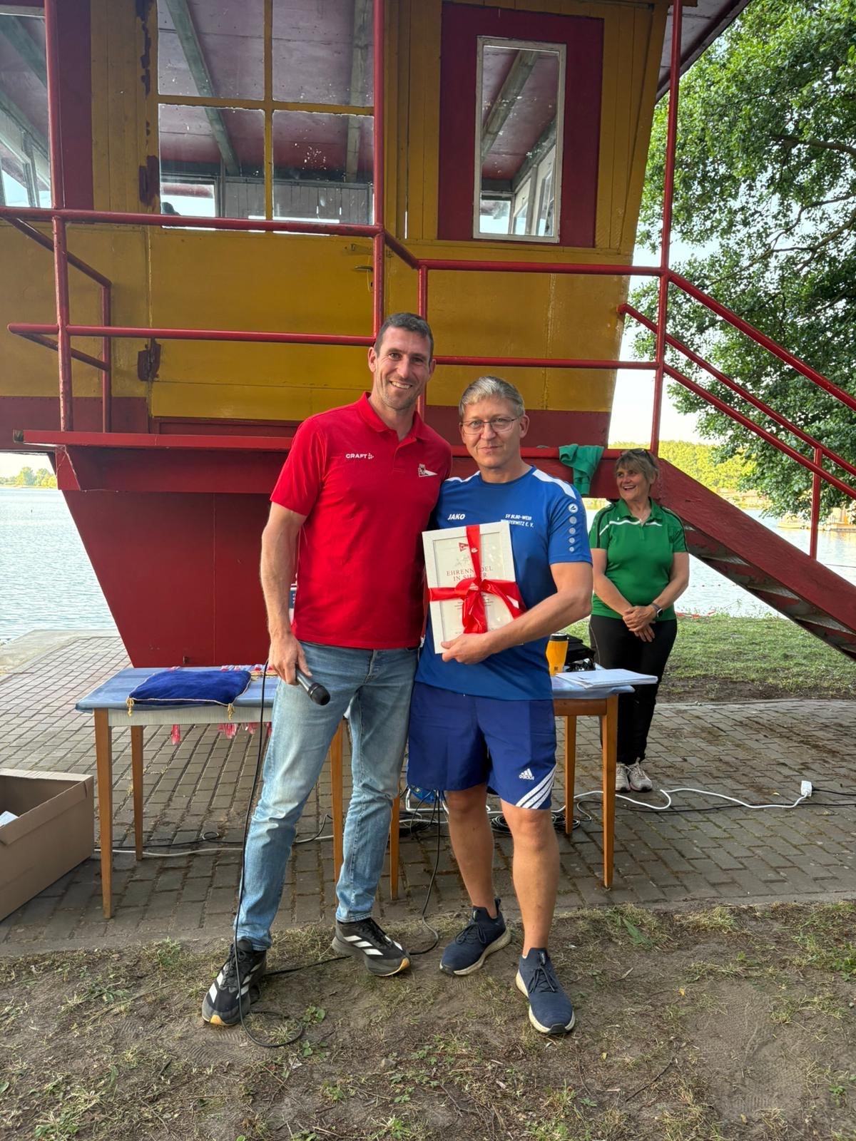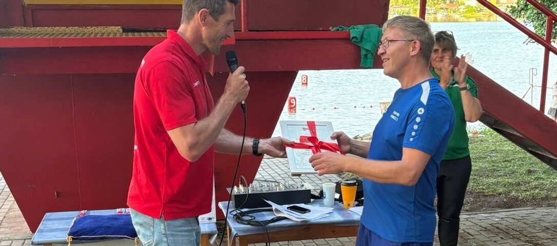 Unser LKV-Vizepräsident Verbandsentwicklung Sebastian Brendel nutzte den Samstagnachmittag zur Übergabe der Anerkennungsurkunden (2025-2028) an die sieben Landesstützpunkte im Kanu-Rennsport. In diesem Zusammenhang bedankte sich der Verband bei einem seiner engagierten Ehrenamtler. Holger Sondermann erhielt im Rahmen der Landesmeisterschaften die LKV-Ehrennadel in SILBER für sein langjähriges Engagement. Sowohl als Trainer am Landesstützpunkt Wusterwitz, als auch bei der Organisation zahlreicher Regatten und Meisterschaften für den LKV Brandenburg war Holger stets ein verlässlicher Partner. So auch in diesem Jahr, wo er gemeinsam mit seinem Vereinsteam allen Teilnehmern eine tolle Landesmeisterschaft in Wusterwitz ermöglichte.