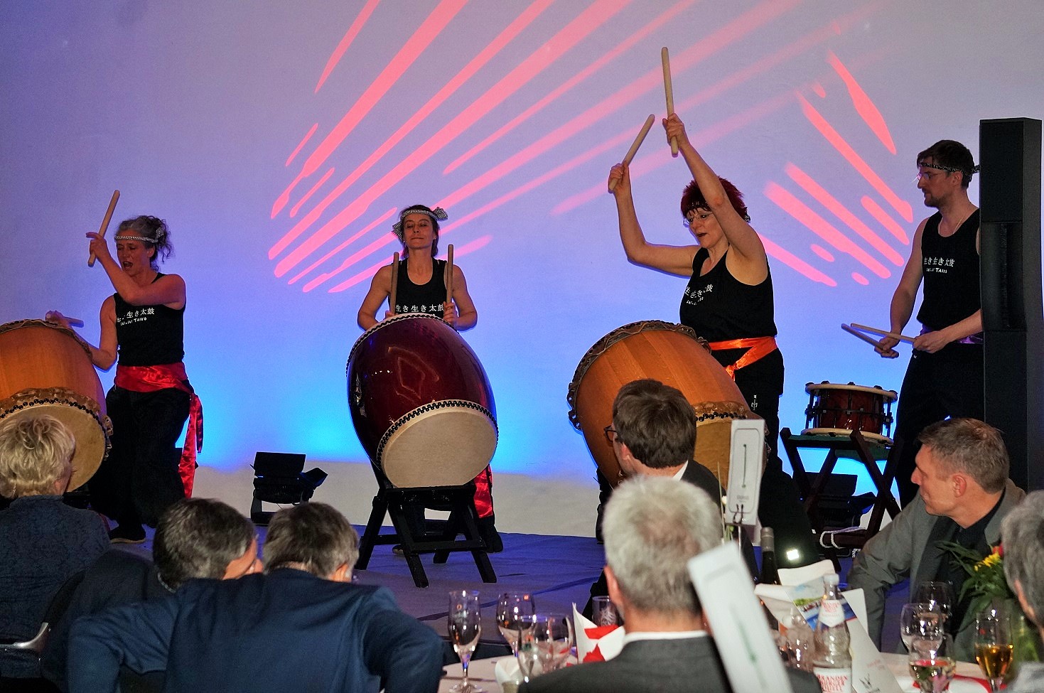 Auf die Olympischen Spiele von Tokio, als das diesjährige sportliche Großereignis worauf sich die Potsdamer Leistungsträger besonders intensiv vorbereiten, wurde während der Kanuparty eindrucksvoll hingewiesen: Sowohl durch die lautstarken akustischen Einlagen der Gruppe iki – iki TAIKO aus Berlin, die vollendete japanische Trommelkunst demonstrierte als auch durch den Hotelkoch des Seminaris Seehotel mit seinen Gerichten auf dem angerichteten asiatischen Büffet.