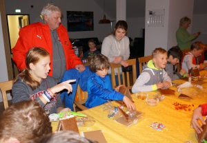 © Günter Welke 2017 | Lichterlauf 13.12 K. Wagner-Augustin gibt Anleitung beim Bau der Pfferkuchenhäuschen