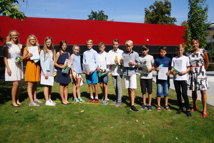 Aus den Händen der Vizepräsidentin Olympischer Wettkampfsport des Landes-Kanu-Verbandes Brandenburg Petra Welke erhielten die neuen Kanu-Sportschüler/-innen ihre Sportschulzertifikate. Zusammen mit vier jungen Volleyballerinnen bilden sie nunmehr eine der neuen siebenten Klassen, die von den Klassenlehrern Sascha Viola und Stefan Danz geleitet wird. Lehrer-Trainer Danz zeichnet gleichzeitig für eine Trainingsgruppe am Landesstützpunkt Kanu-Rennsport Potsdam verantwortlich.