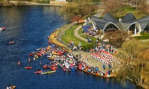 Etwa 80 Paddelboote verschiedener Art bevölkerten am Vormittag des 08.April das Havelgewässer vor der „Seerose“ in der Potsdamer Innenstadt.